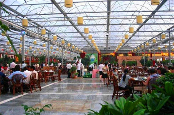 綠色生態(tài)餐廳完全按照標準溫室的結構建造,多采用文洛式,覆蓋材料多為PC板或者玻璃,結構保溫性能好,整齊規(guī)范,室內(nèi)各個空間溫度均勻,有利于景觀植物的生長,鑒于餐飲布局的需要,在文洛溫室結構的基礎上,可進行局部調整。該溫室建造成本相對較低,溫室升降溫能耗低,節(jié)約后期運行費用。
